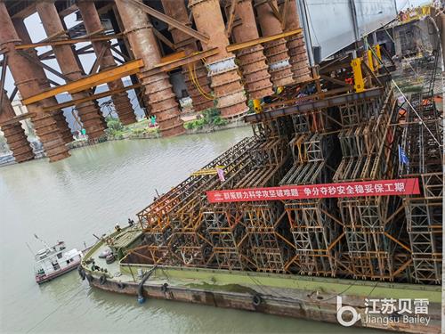 眾志成城:中鐵二十四局,江蘇貝雷,上海寶盛昌,上海先科,聯(lián)手創(chuàng)新杭州余杭區(qū)1800噸鋼箱梁浮托法跨運(yùn)河(680米)工程圓滿成功。
